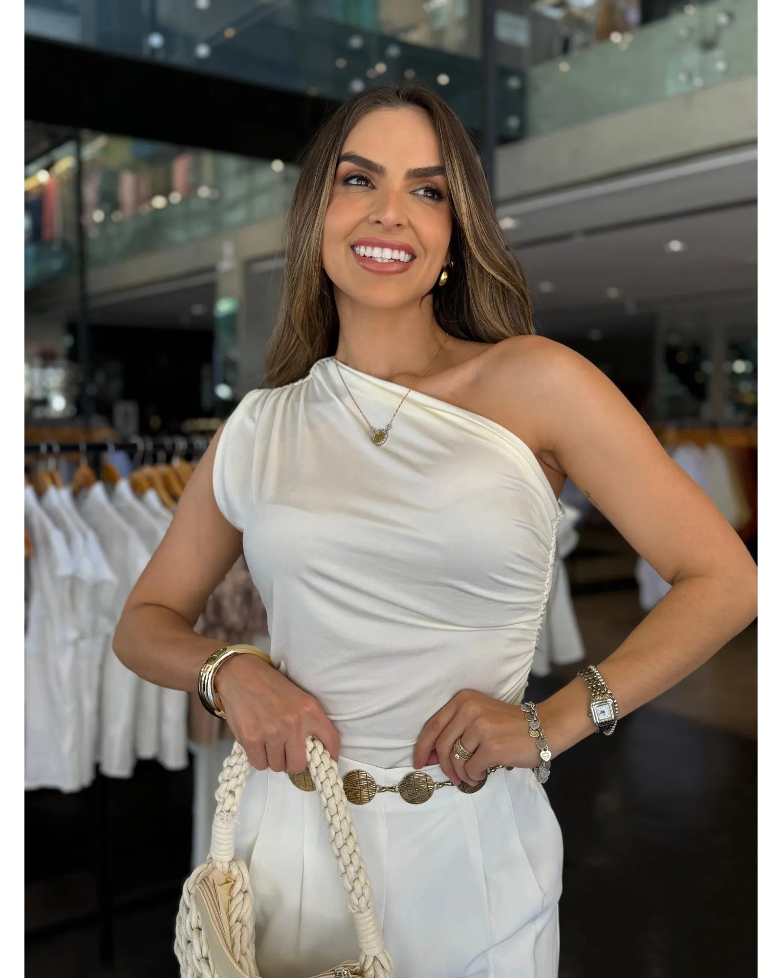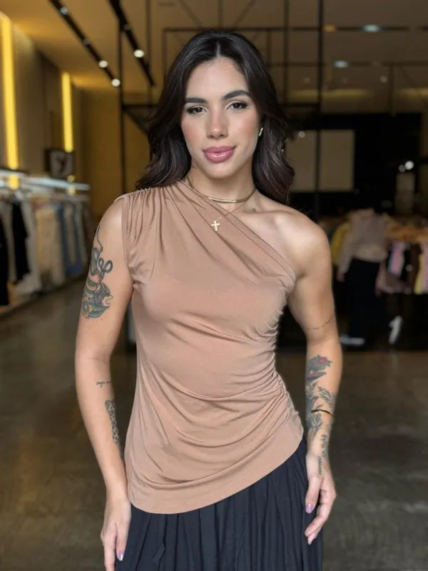 Blusa em tecido suplex premium, que une conforto, elasticidade e caimento impecável. O modelo é moderno e elegante, com design de um ombro só e detalhes franzidos na lateral, que valorizam a silhueta e trazem um toque sofisticado à produção. Seu tecido se ajusta perfeitamente ao corpo, proporcionando liberdade de movimento e praticidade no dia a dia.