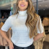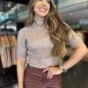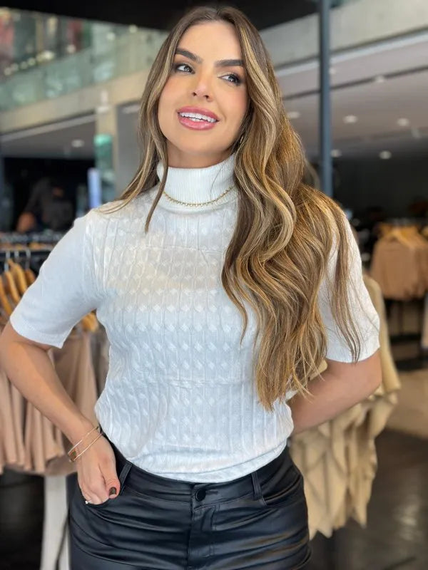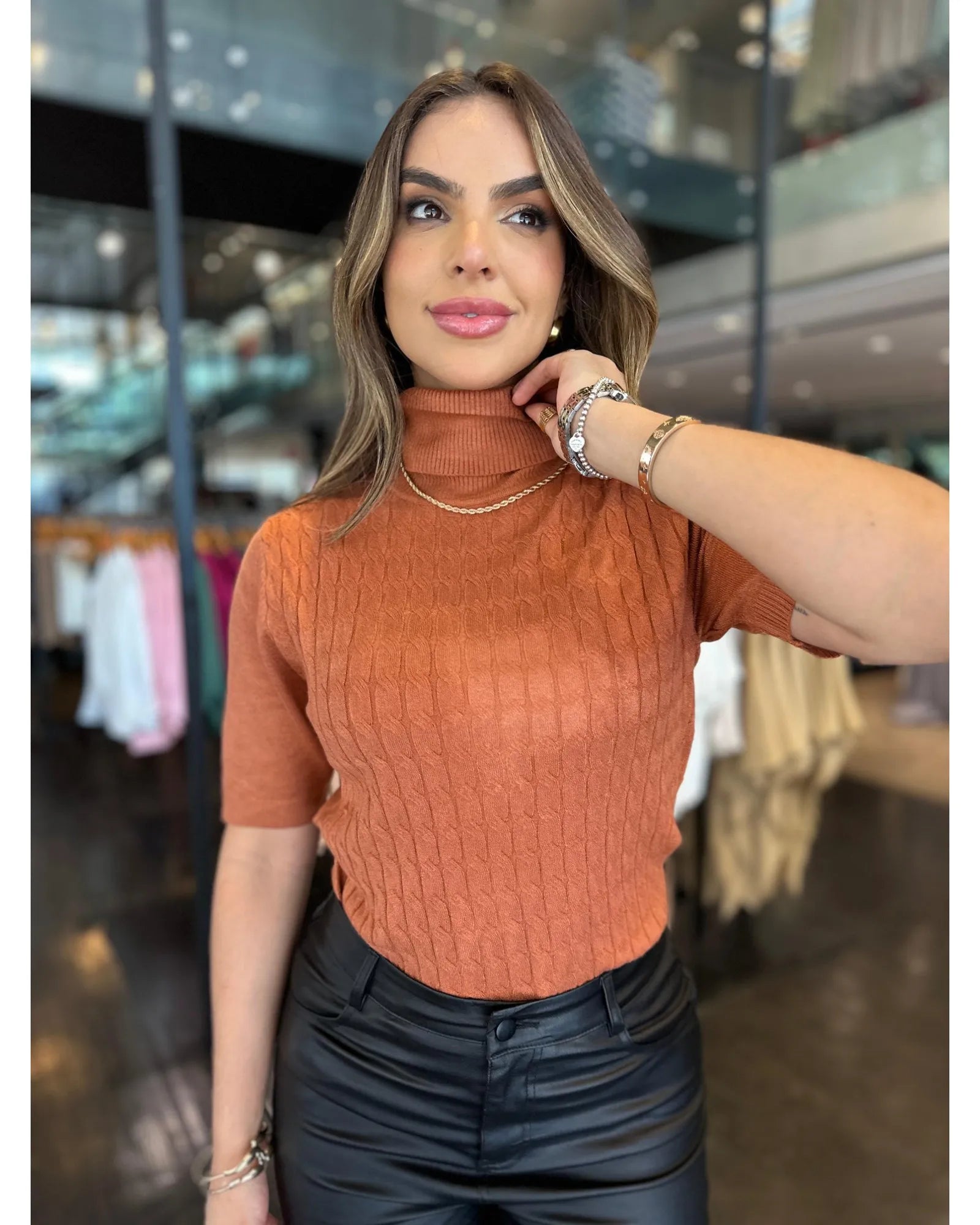 Delicada e versátil, essa blusa é um must-have para quem ama conforto com estilo. Confeccionada em tricot modal, um tecido macio e com bastante elasticidade,ela se adapta ao corpo com leveza e caimento perfeito. O charme fica por conta do detalhe trançado na parte frontal, que dá um toque elegante e diferenciado à peça. De manga curta e gola alta, está disponível em cores lindas e vai até o GG.