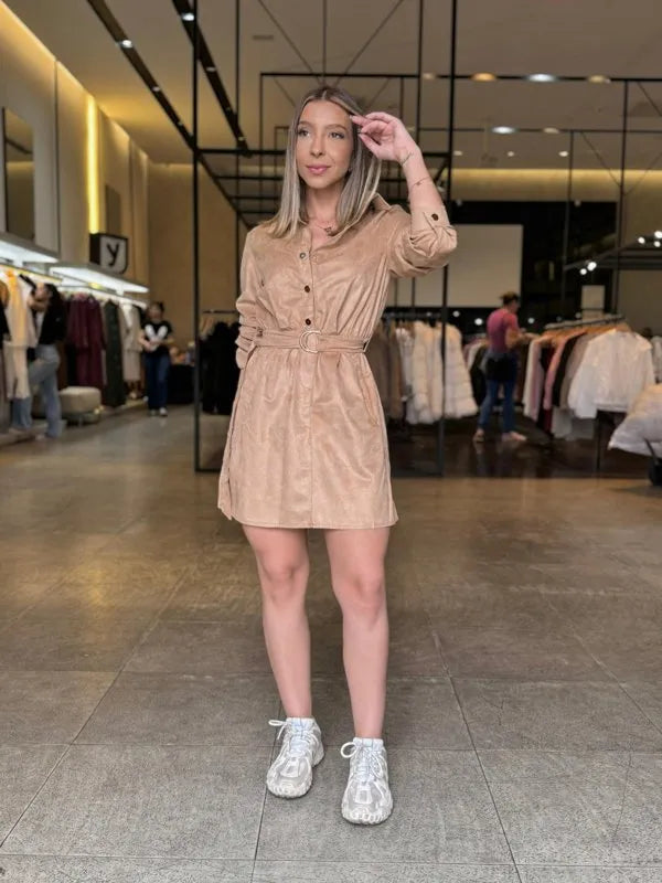 O Vestido Curto Manga Longa é a escolha perfeita para compor looks modernos e cheios de personalidade. Confeccionado em tecido de camurça macio, ele tem toque aveludado e visual elegante, ideal para usar em diversas ocasiões.