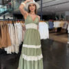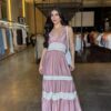 A saia longa com camadas fluídas garante movimento e um visual sofisticado, perfeito para ocasiões especiais ou até mesmo produções casuais mais elaboradas. O tecido une frescor e elegância, tornando-o uma escolha ideal para diferentes estações.